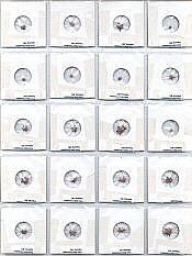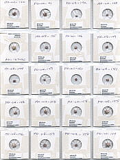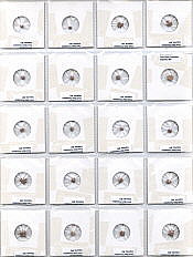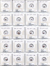 Several buckets of reddish shale were washed and collected in 1mm sieves to remove the fines. The washed shale was hand picked to collect all fossils and the Evactinopora species were separated by the number of rays, and stored in transparent coin folders.Click on examples to Magnify