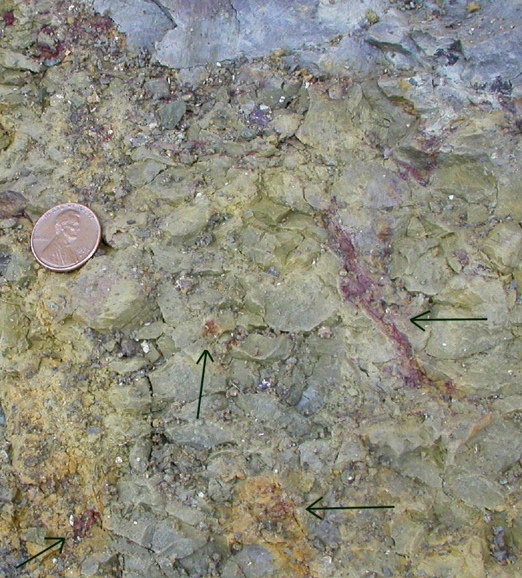 iron oxide called "rhizocretions" (arrows). The rooting may have