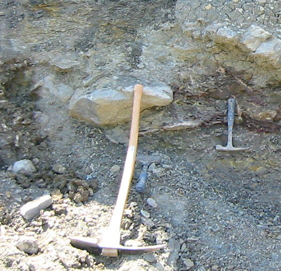 Huge clast of micritic algal fragment limestone, conglomerate