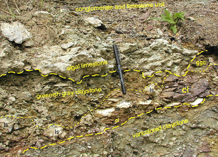 make a definite correlation. The algal limestone is at the base of the
