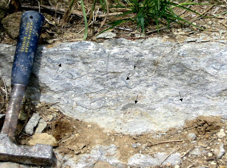 Close-up of algal limestone in mound south of the I-70