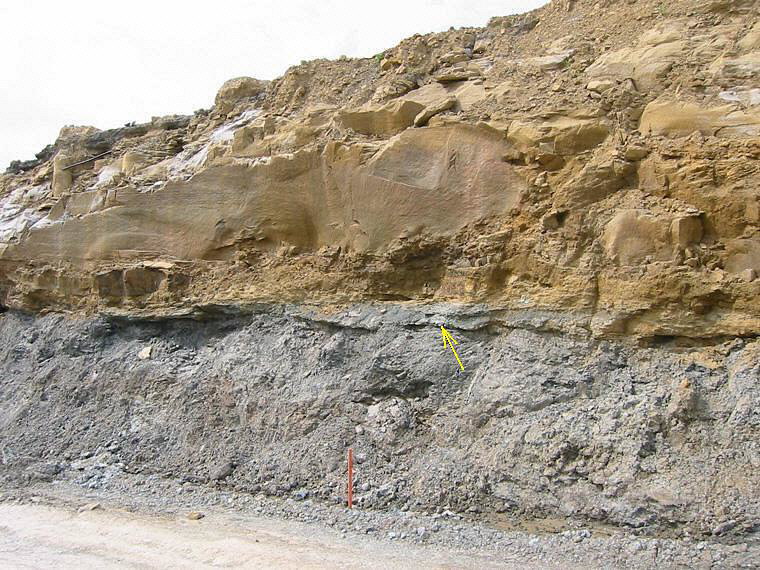 layer of dark gray marine shale containing conodonts, and then mudstone