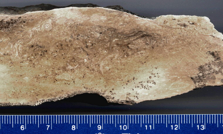 Slab of bioclastic limestone lens from base of Mulberry Member