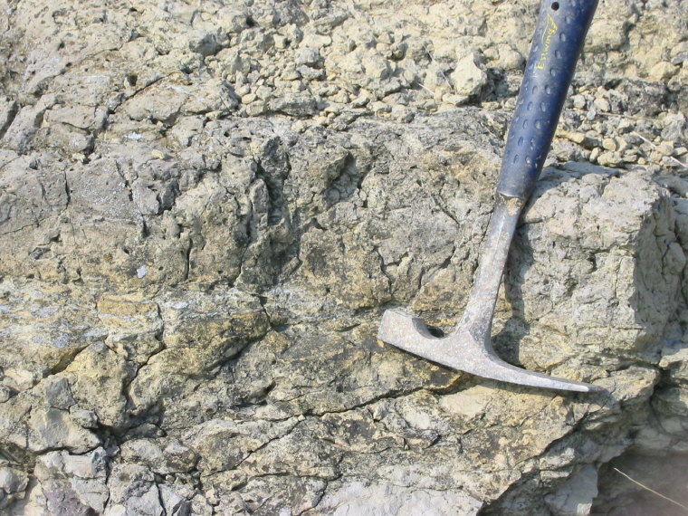 Root molds (side view) at top of Worland Limestone