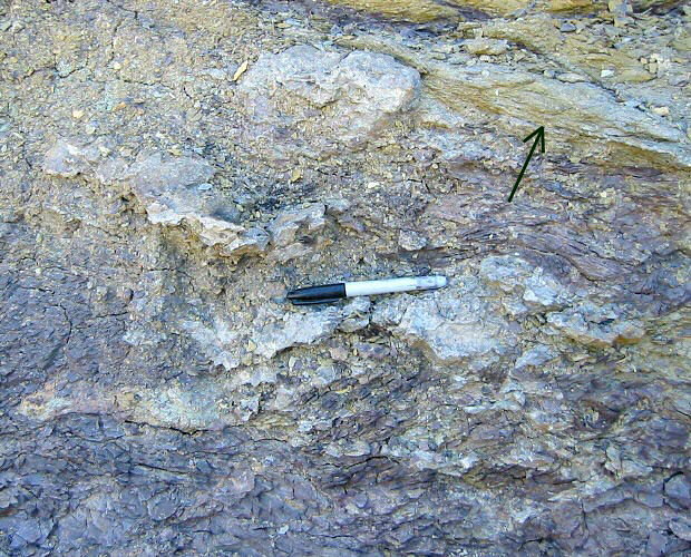 Another such layer lies to the upper left of the pen, and a rounded clast of