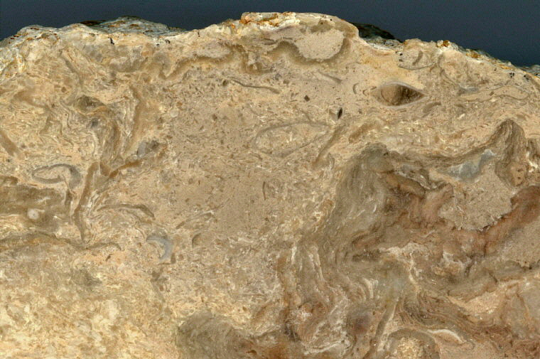 Close-up of slab of algal limestone from conglomerate and limestone unit