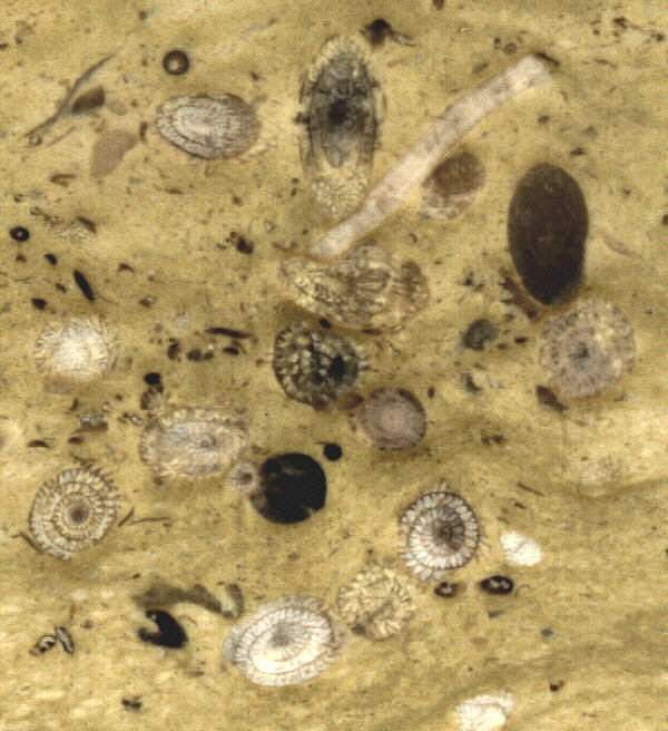 Close-up, of fusulinid limestone slab from Worland Limestone