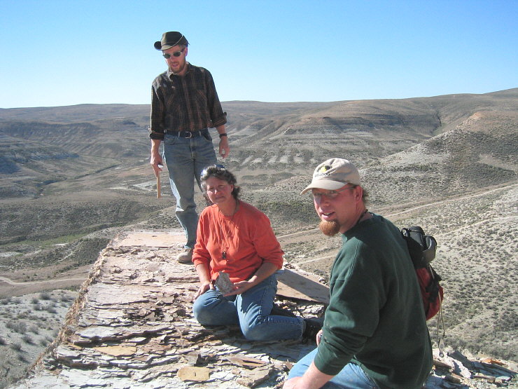 Here is "digging blasted (meaning they have been pancaked out ) Green River Eocene knightia fossil fish on patented land outcrop.