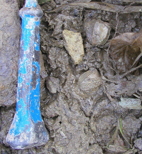 Two blastoids. They weathered out of the hill and settled together near the stream. Hey Carl ... I found a couple nice large blastoids with in an inch of each other!