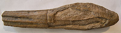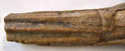 The cross section reminds me of a crinoid columnal, other than that my best guess is some strange crinoid sp., it measures 9" x 2.5" x 1.5" another aspect that has me completely stumped.