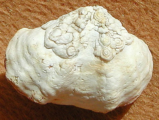 Beekite rings on a Devonian brachiopod Kozlowskiellenia velata Click on picture to Go-Back