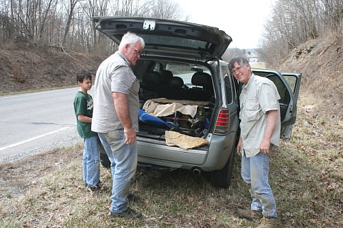 Jake Ashcraft (left), Roger (fossil hunting buddy), and Bill Teeters (Paleolist member)