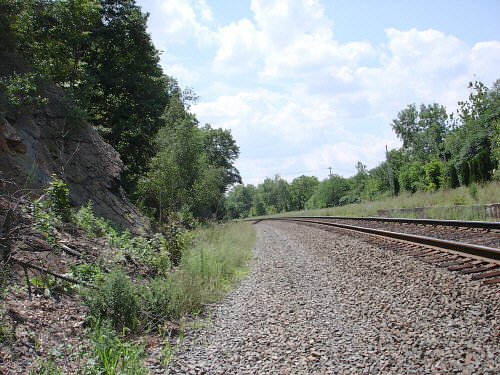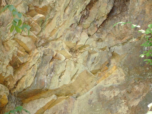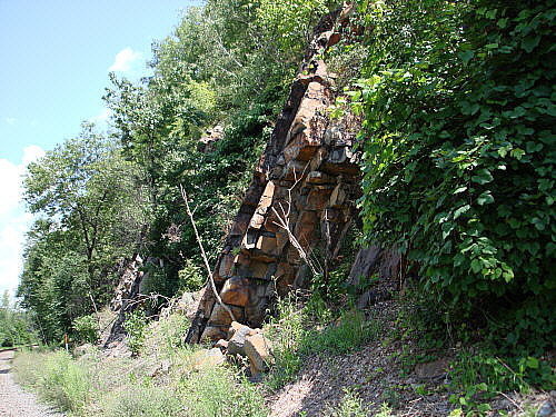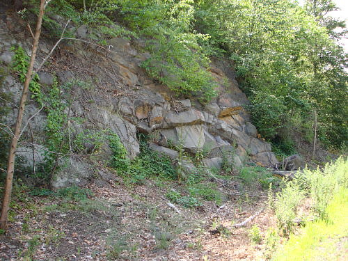 Yes, the outcrop is at a 65 deg. Angle and is within a few feet of tracks with trains
