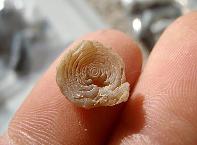that sometimes are noticed on some fossils.See Bill Rushlau's page: Beekite rings on brachiopods
