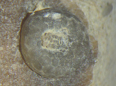 The scar from a Lichenocrinus attachment on a clam.