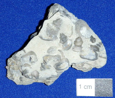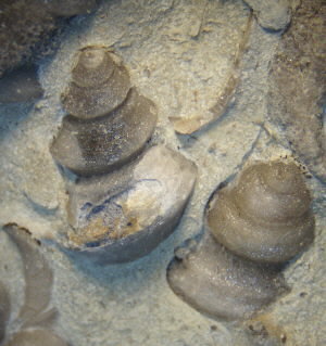 Mollusk-rich lenses are found at one outcrop. This one is rich in Lophospira, but they
