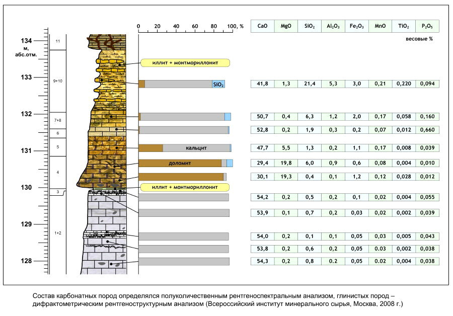 masses of chert (chalcedony) in the lower (Kasimovian) part of the