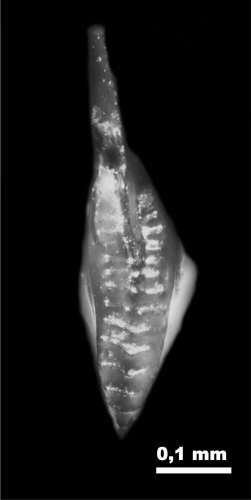 Idiognathodus toretzianus Kozitskaya Click on image to magnify Go-Back Conodont - Gzhelian Stage (Pennsylvanian)