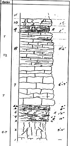 8) Limestone; clearly distinct from that below; med- to brownish-gray,